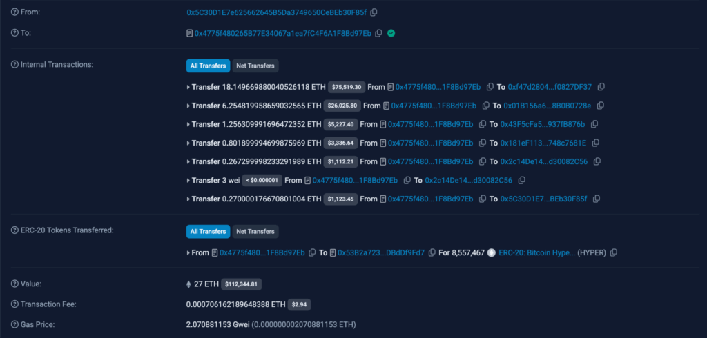 Whales have been particularly quick to recognize HYPER’s upside potential. For instance, one deep-pocketed investor swapped 27 ETH for Bitcoin Hyper, worth over $112k.