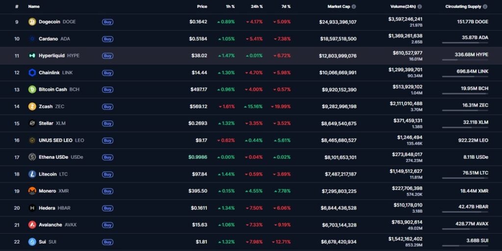 Monero also gained 4%, while Zcash (ZEC) jumped 15%, highlighting pockets of strength in an otherwise weak altcoin market. These movements demonstrate Bitcoin’s continuing influence on overall market sentiment.