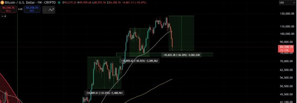 Bitcoin has just undergone one of its sharpest declines in recent memory, plunging to nearly $80,500. While dramatic, seasoned market participants will recognize that this pullback is modest compared to the 77% crashes seen in previous cycles.