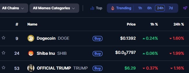 The race for trending meme coins continues to gain momentum, and today’s market activity highlights why this segment remains one of the most dynamic in crypto. Dogecoin (DOGE), Shiba Inu (SHIB), and Pepe (PEPE) currently lead the pack.