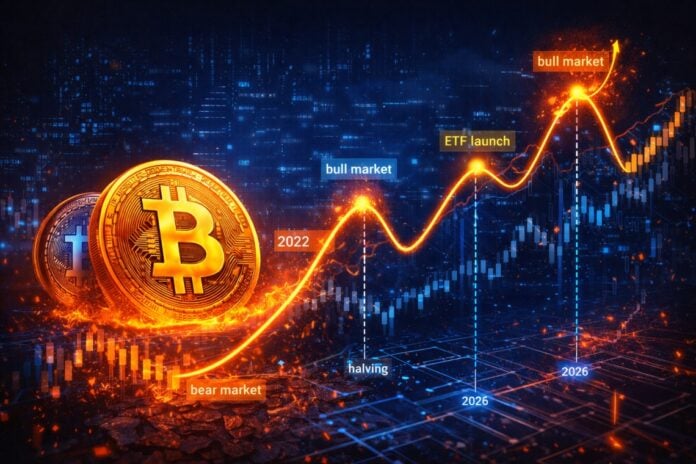 Bitcoin cycles are often interpreted through a rather simple lens: that of the repetitiveness linked to the Bitcoin halving. Historically, the periodic reduction of the new BTC supply has coincided with a fairly recognizable sequence of market phases. After the halving, an accumulation phase tends to give way to a bull market that culminates in a peak about a year or a year and a half later, followed by a period of correction and consolidation.