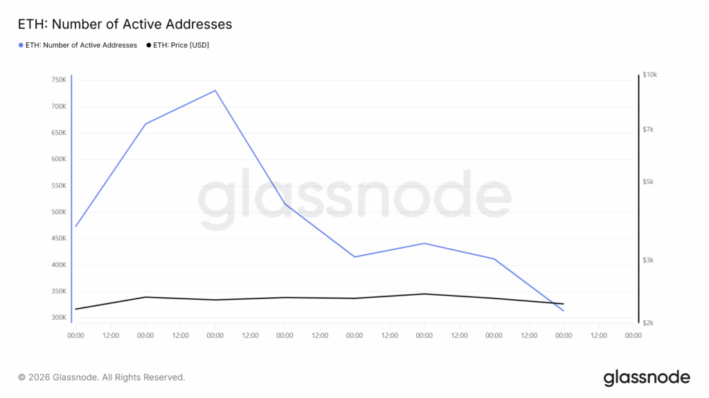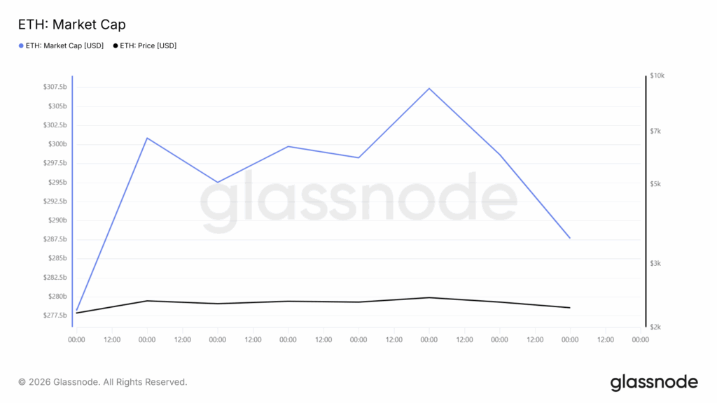 Another contributing factor in predicting the price of ethereum is on-chain indicators provided by Glassnode, indicating a drop in general activity on the network. In terms of the market cap indicator, there has been a negative movement since a recent top.